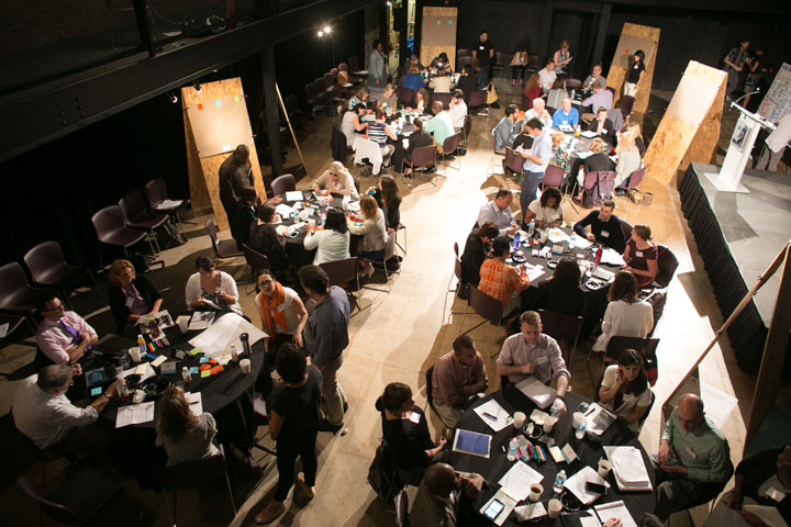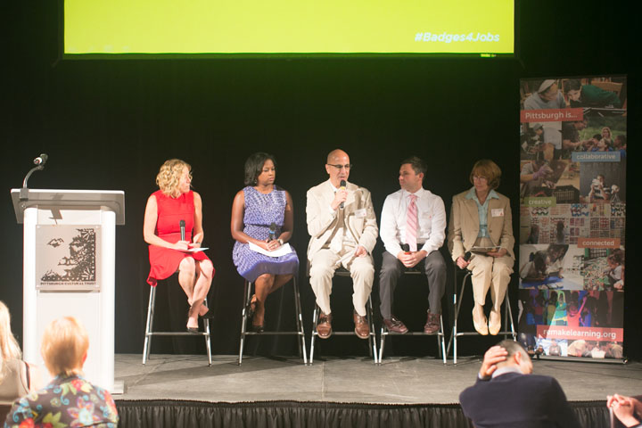 In November 2014, Sprout hosted a large public forum to explore the potential for digital badges. The event featured a mixture of keynote remarks, panel discussions, table-based facilitation activities, science fair-style feedback stations, and an enthusiastic emcee.