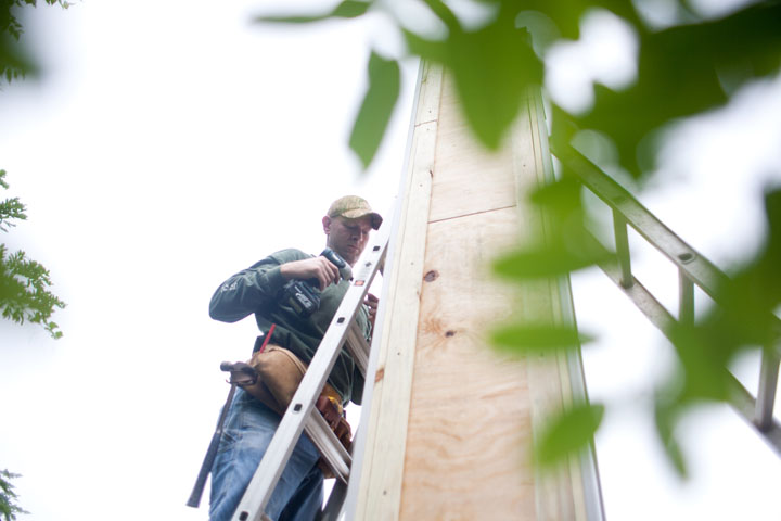 Creating an athletic dance performance using 16-foot seesaws, steel ramps, moving doors, and ladders-built by Red Star Ironworks.