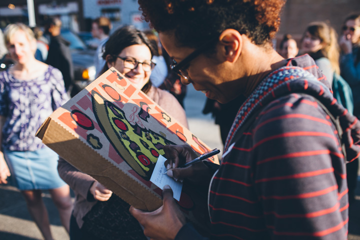 Using the universally accepted medium of pizza to help students share their thoughts and actively engage with their community.