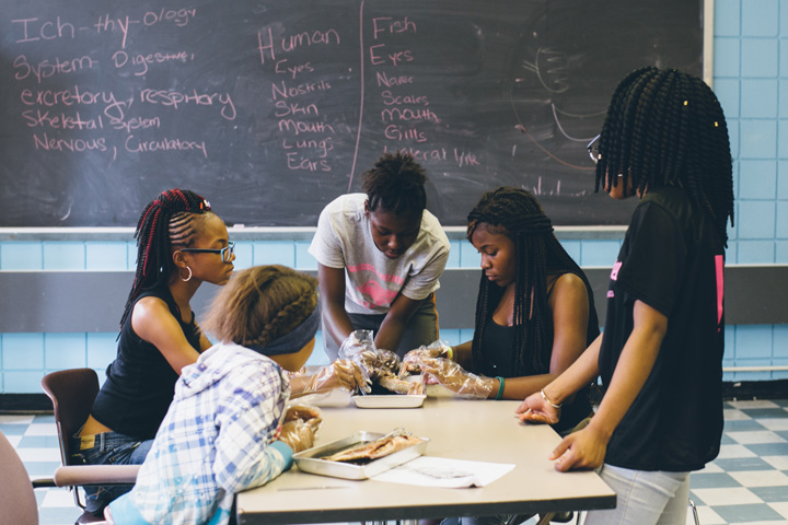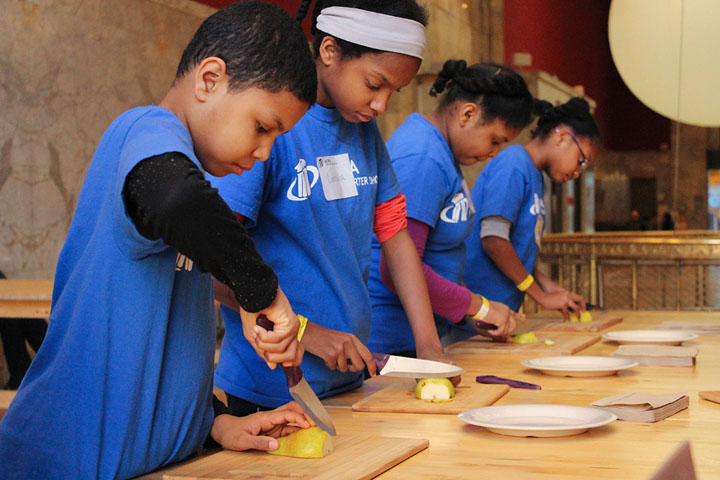 Teaching students about cultivation and cooking, from recipe writing to floral arranging, after working with food grown on-site at the museum’s community gardens.