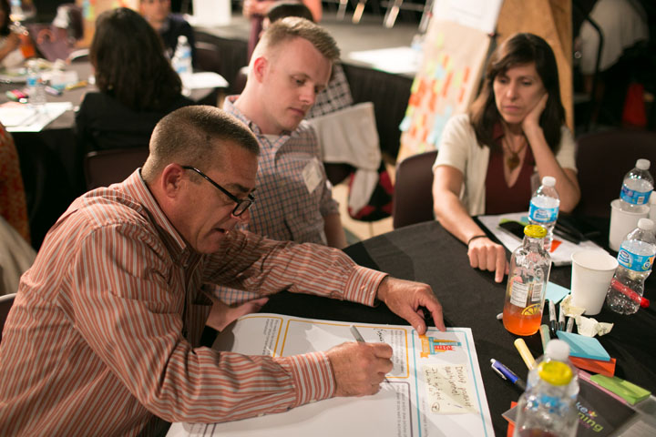 In November 2014, Sprout hosted a large public forum to explore the potential for digital badges. The event featured a mixture of keynote remarks, panel discussions, table-based facilitation activities, science fair-style feedback stations, and an enthusiastic emcee.